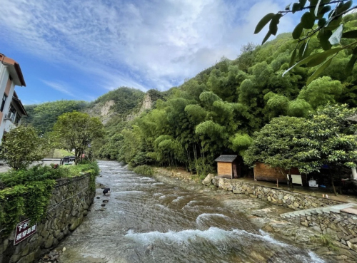 群山環(huán)抱,溪水清澈見(jiàn)底,漂流途中兩岸山林連綿起伏,郁郁蔥蔥,